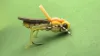 Hook: Std Dry #14 - #16 Thread: Olive Body: Acrylic Hair Band Legs: Tan CDC Wing: Deer Hair