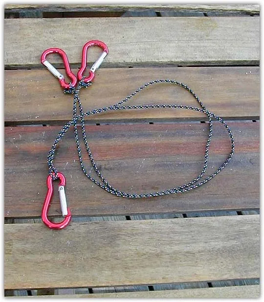 A short string with some carabiners tied on can be very practical for securing stuff to the kayak. I usually hook my rod onto one of these while moving from one spot to the next.